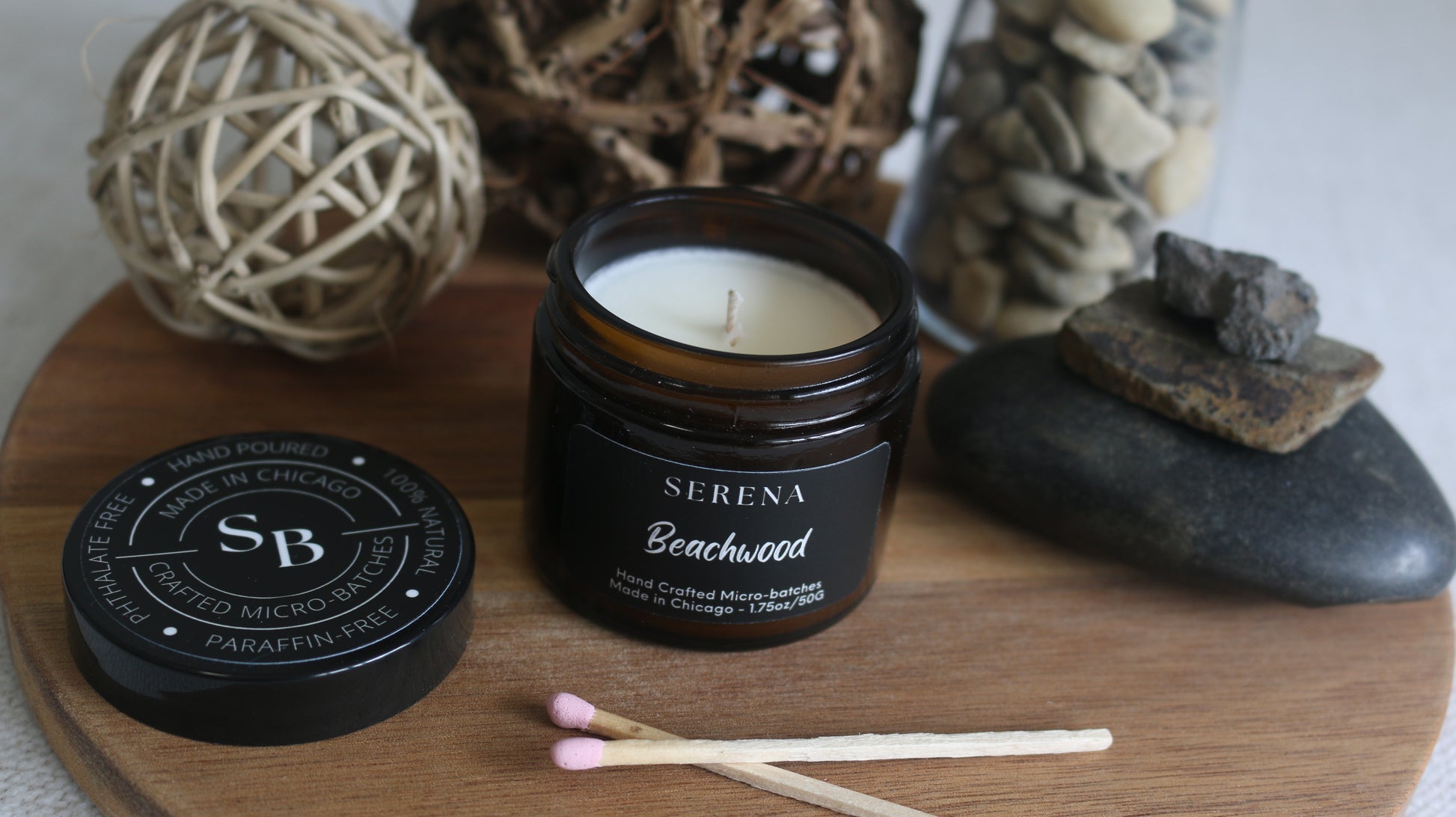 Each of our candles are hand-poured in small batches in Chicago, IL. We source perfume grade fragrance oils and carefully blend them with 100% USA Farmer Soybean Based soy wax.