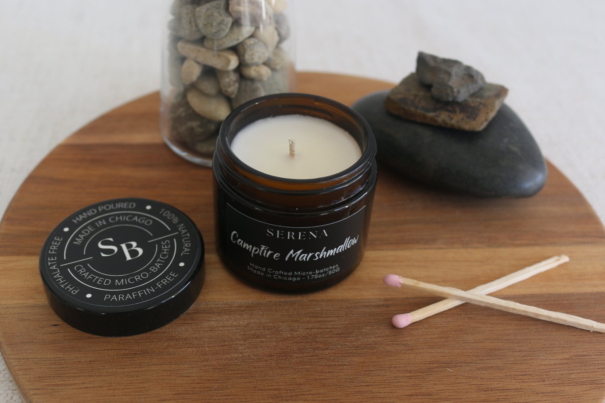 Each of our candles are hand-poured in small batches in Chicago, IL. We source perfume grade fragrance oils and carefully blend them with 100% USA Farmer Soybean Based soy wax.