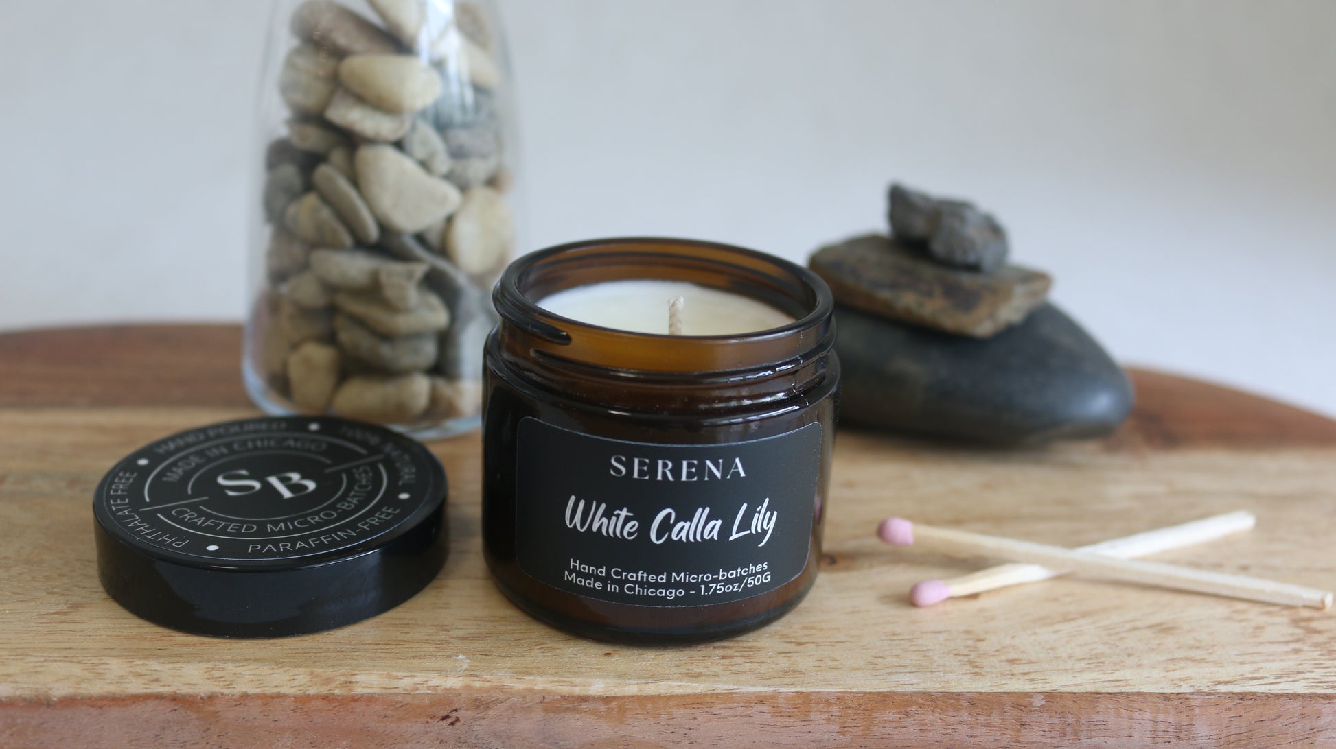 Each of our candles are hand-poured in small batches in Chicago, IL. We source perfume grade fragrance oils and carefully blend them with 100% USA Farmer Soybean Based soy wax.
